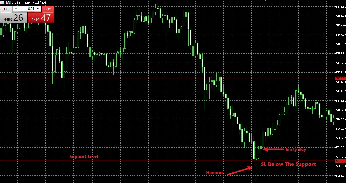 Hammer at Support (Bullish Signal)