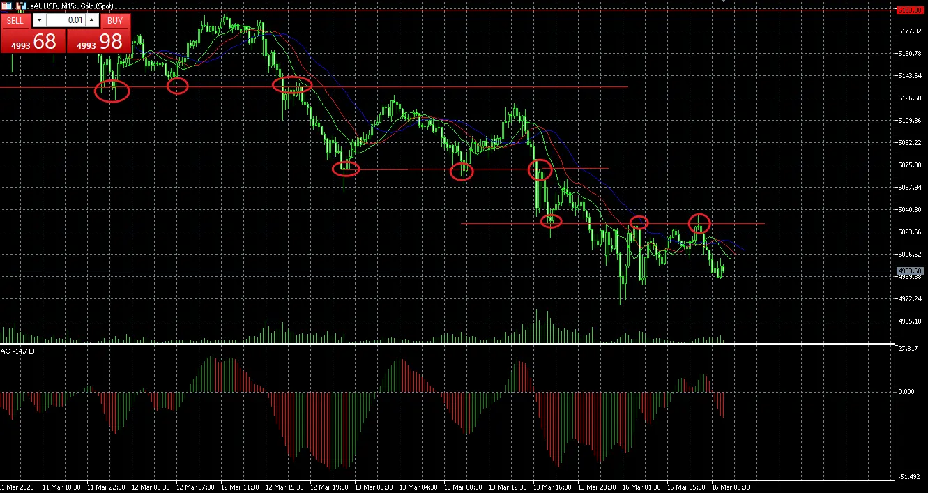 In this example using the Gold (XAUUSD) 15-minute chart, we can clearly see how previous support zones later acted as resistance, confirming the continuation of the bearish trend.